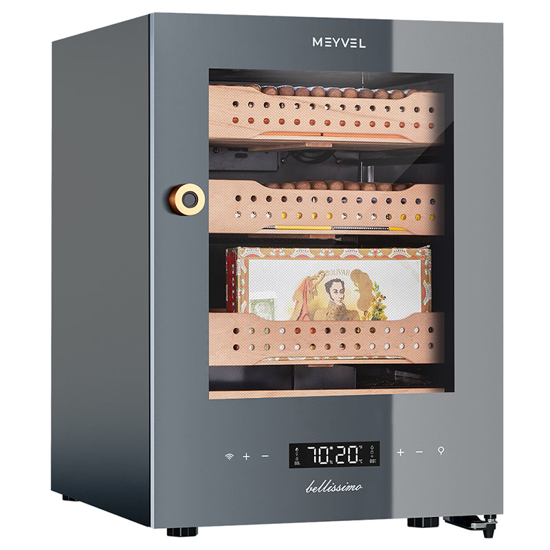 Хьюмидор Meyvel MC-50BK (PRO) предназначен для правильного хранения табака и сигар. Пользователь может контролировать температуру и влажность. Сенсорная панель управления с интуитивно понятным интерфейсом расположена на внешней стороне дверцы. Внутри есть подсветка, в том числе с демонстрационным режимом работы. Сигары хранятся в выдвижных ящиках из испанского кедра. Его древесина обладает антисептическими свойствами, способствует поддержанию уровня влажности. Стекло дверцы двойное, энергосберегающее, с покрытием от ультрафиолета.