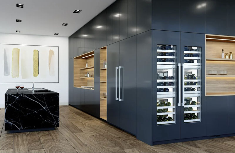Винный шкаф управляется электроникой, контролирует температуру и влажность. Настройки вводятся с помощью цветного экрана Touch & Swipe с поддержкой касаний и жестов пролистывания. Оттаивание автоматическое.