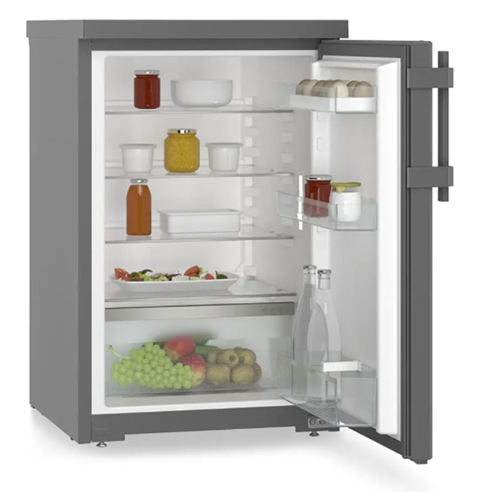 Малогабаритный холодильник LIEBHERR Rdgd 1400 Pure соответствует всем современным требованиям. У него электронное управление, сенсорная панель с индикацией температуры и функцией блокировки, система сигнализации неисправностей и слишком долго открытой дверцы. Дверца может перенавешиваться в нужную сторону, снабжена стопором DoorStop (позволяет оставить отключенный шкаф открытым во избежание появления внутри запаха). Ручка накладная, с толкателем.
