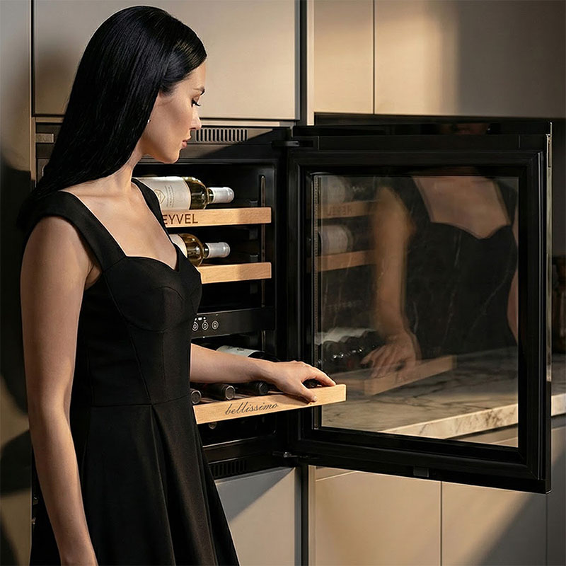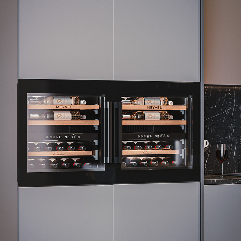 Встраиваемый винный шкаф Meyvel MV26PRO-KBB2 — высокотехнологичный, компактный, удобный. Занимает мало места, может встраиваться в колонну или под столешницу, вмещает до 26 бутылок. При этом не уступает в функциональности своим более крупным собратьям. У него: