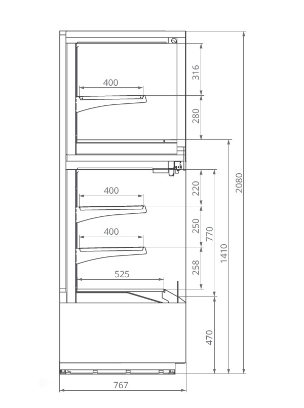 - Охлаждаемая зона выкладки: 2 полки + нижняя поверхность