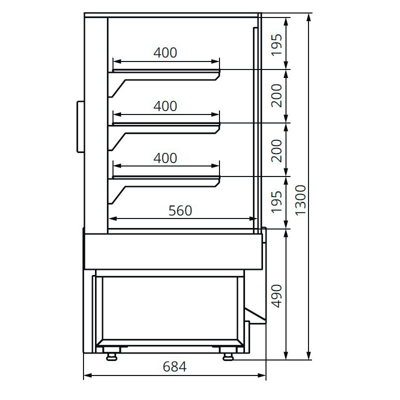 - Подсветка каждой полки (в базовом исполнении 4000К подсветка вертикальная)